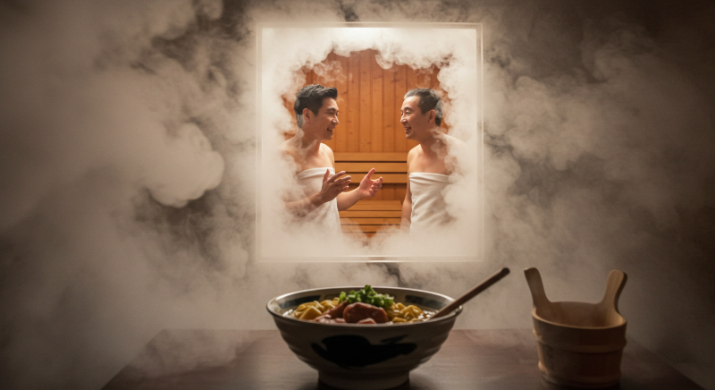 気の置けない仲間と過ごす、ラーメンとサウナの夜。
