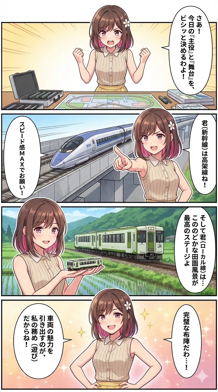 番線ごとに特徴があるので、「この景色には在来線が似合うな」「この勾配ならパワーのある電気機関車で挑戦しよう!」と、どの車両をどの路線で走らせるか、親子で作戦会議をするのも楽しみの一つになります。