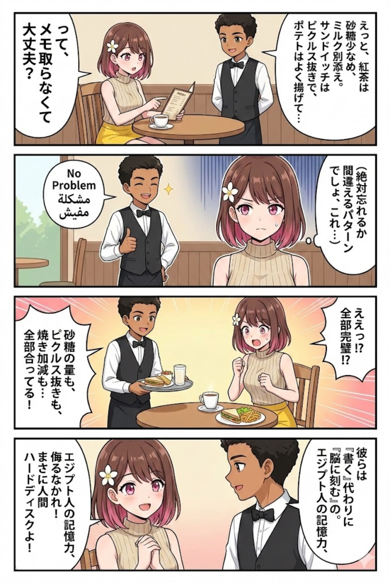 おそらく、メモを取らない文化だからこそ、記憶力が鍛えられているのでしょう。