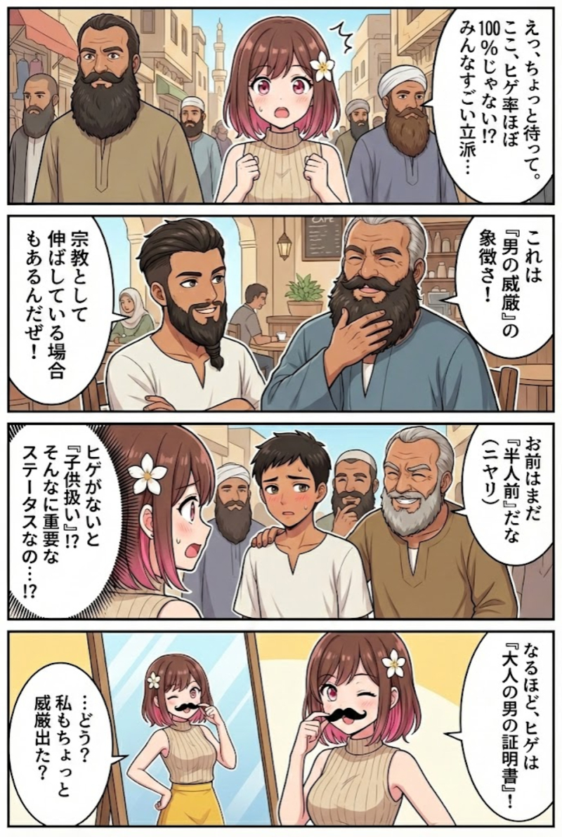 - 女性にモテるため:現地の女性に聞くと、やはりヒゲがある方が男らしくてカッコよく見えるそうです。