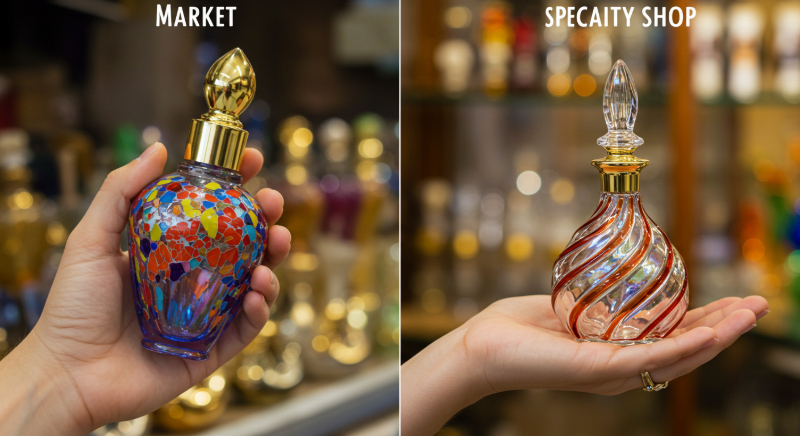 繊細なガラス製品なので、持ち帰りには注意が必要です。ホテルで買った高い香水瓶だけが、スーツケースの中で割れていました…。バラマキ用に買った安いものは全部無事だったのに…。人生とは、思い通りにならないものですね。
