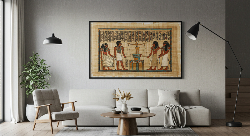 古代の壁画などが描かれたパピルスは、部屋に飾るだけでエキゾチックな雰囲気に。