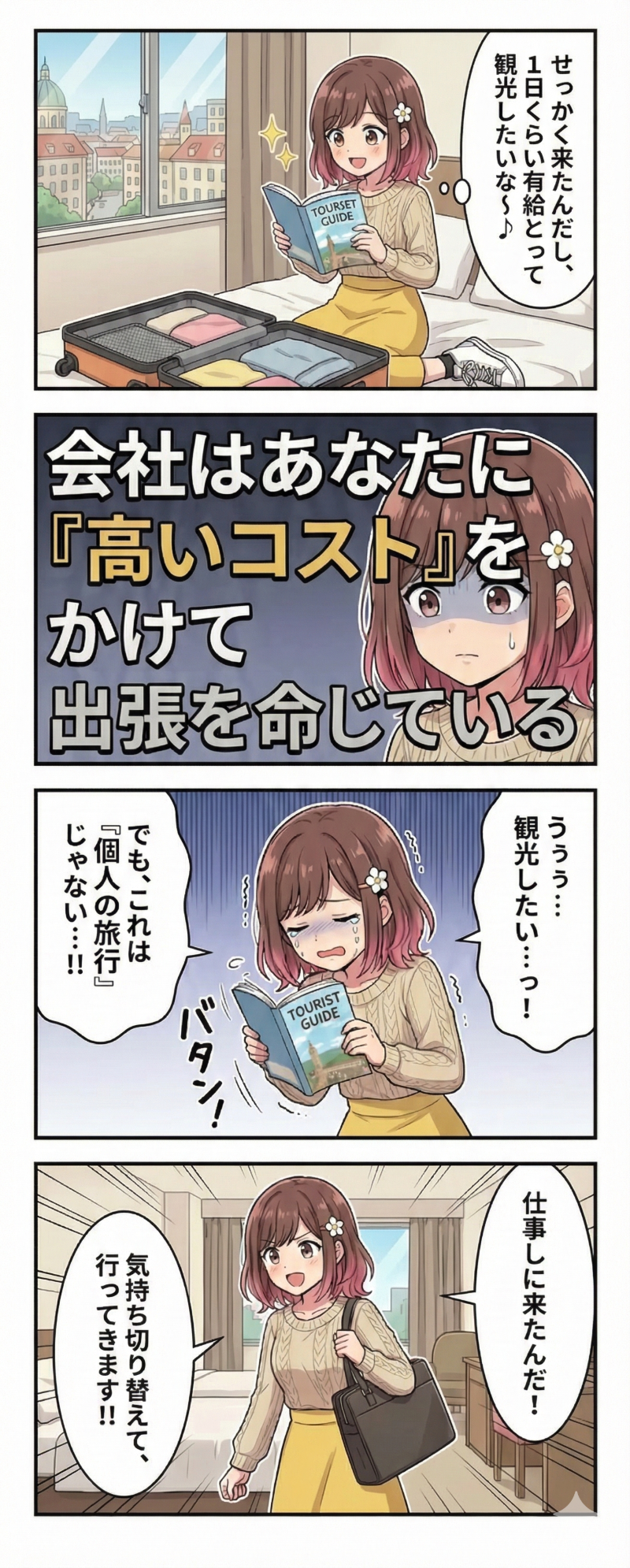 会社は、あなたに「現地で仕事をしてもらう」ために、高いコストをかけて出張を命じています。